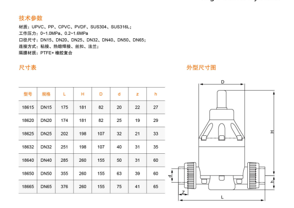 隔膜采用先進(jìn)的PTFE+橡膠復(fù)合工藝,幾乎適用于所有腐蝕性流體,密封可靠無泄漏。