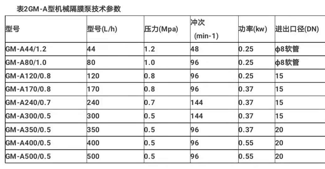 GM-A機(jī)械隔膜計(jì)量泵流量范圍:0-200L壓力范圍: 0-1.0MPA電機(jī)功率: 0.25KW 0.37KW驅(qū)動(dòng)系統(tǒng):兩相、三相電機(jī) 防爆 變頻防護(hù)等級(jí): IP54流量控制:手動(dòng)控制,自動(dòng)控制(接收4-20mA信號(hào))材料泵頭: SUS304、SUS316.、PVC.、PTFE、PP、PVDF隔膜: PTFE襯橡膠單向閥: SUS304,、SUS316,、PVC,、PTFE、PVDF閥
